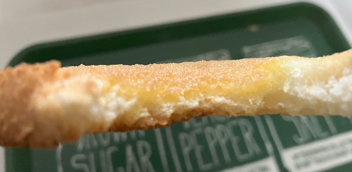 メロンパンの風味は感じますが・・・弱い・・・。まず、食パンの面積に対してメロンパンシートが小さすぎます。そして私は今回、8枚切り食パンを使用したにも関わらず、この風味の弱さ。4枚切り食パンとかだったら、更に更にメロンパン感は脆弱になるのではないでしょうか。